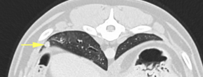 Image 6: Small nodule in the right caudal lung lobe (arrow).