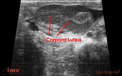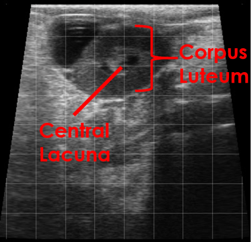 In this image, two corpora lutea can be seen indicating that a double ovulation has occurred.