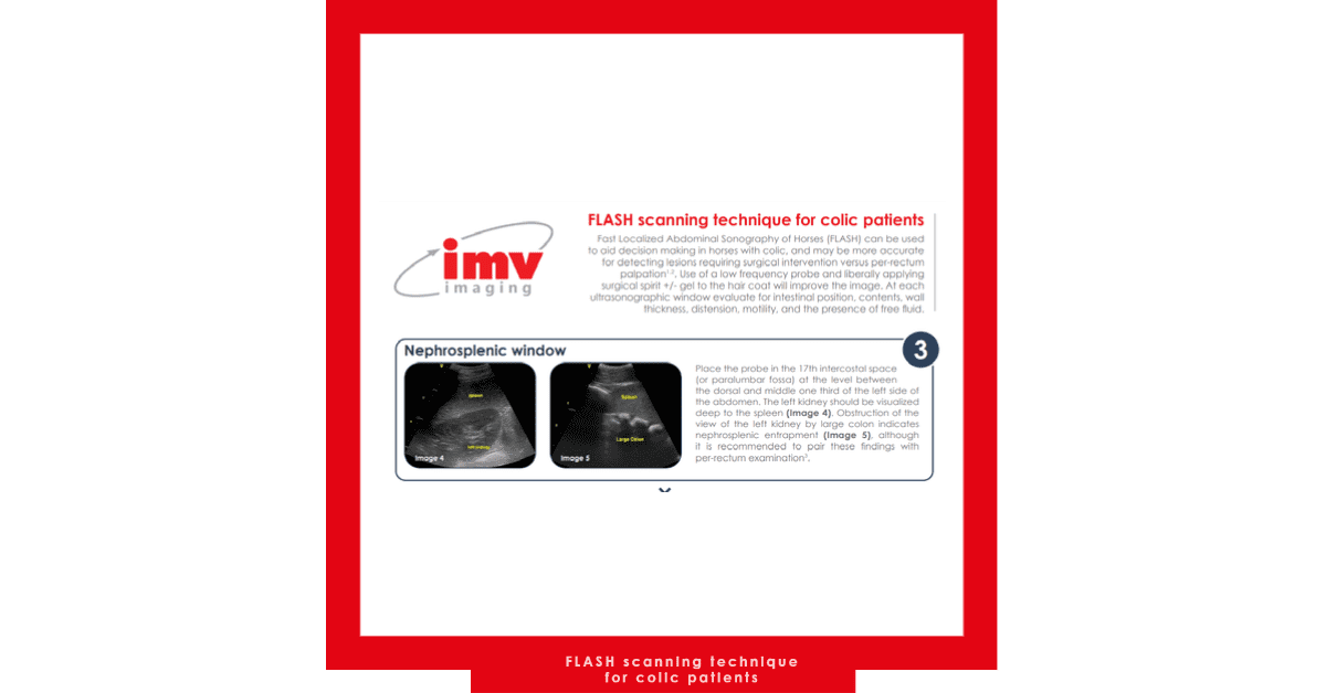 A reference article for equine vets on fast localized abdominal sonography of horses (FLASH) to aid decision making in horses with colic.