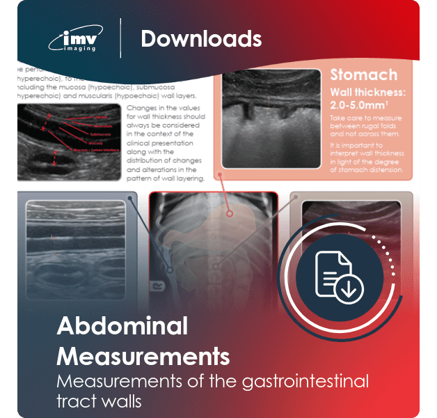 A reference poster for small animal vets on the common measurements performed abdominal ultrasound.