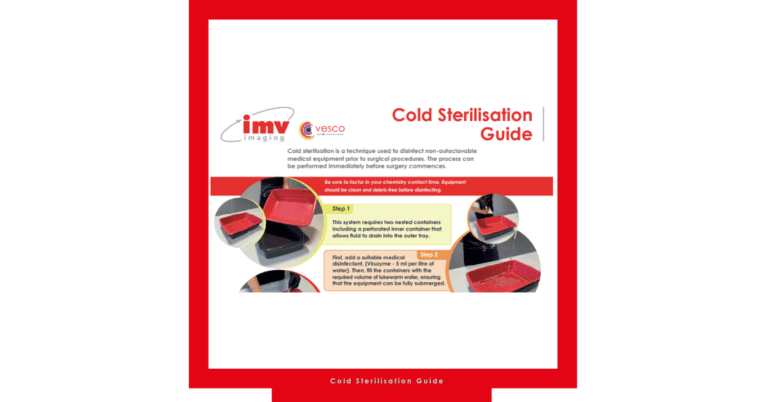 This is a quick-reference poster showing cold sterilisation technique for non-autoclavable equipment (endoscopy and laparoscopy).
