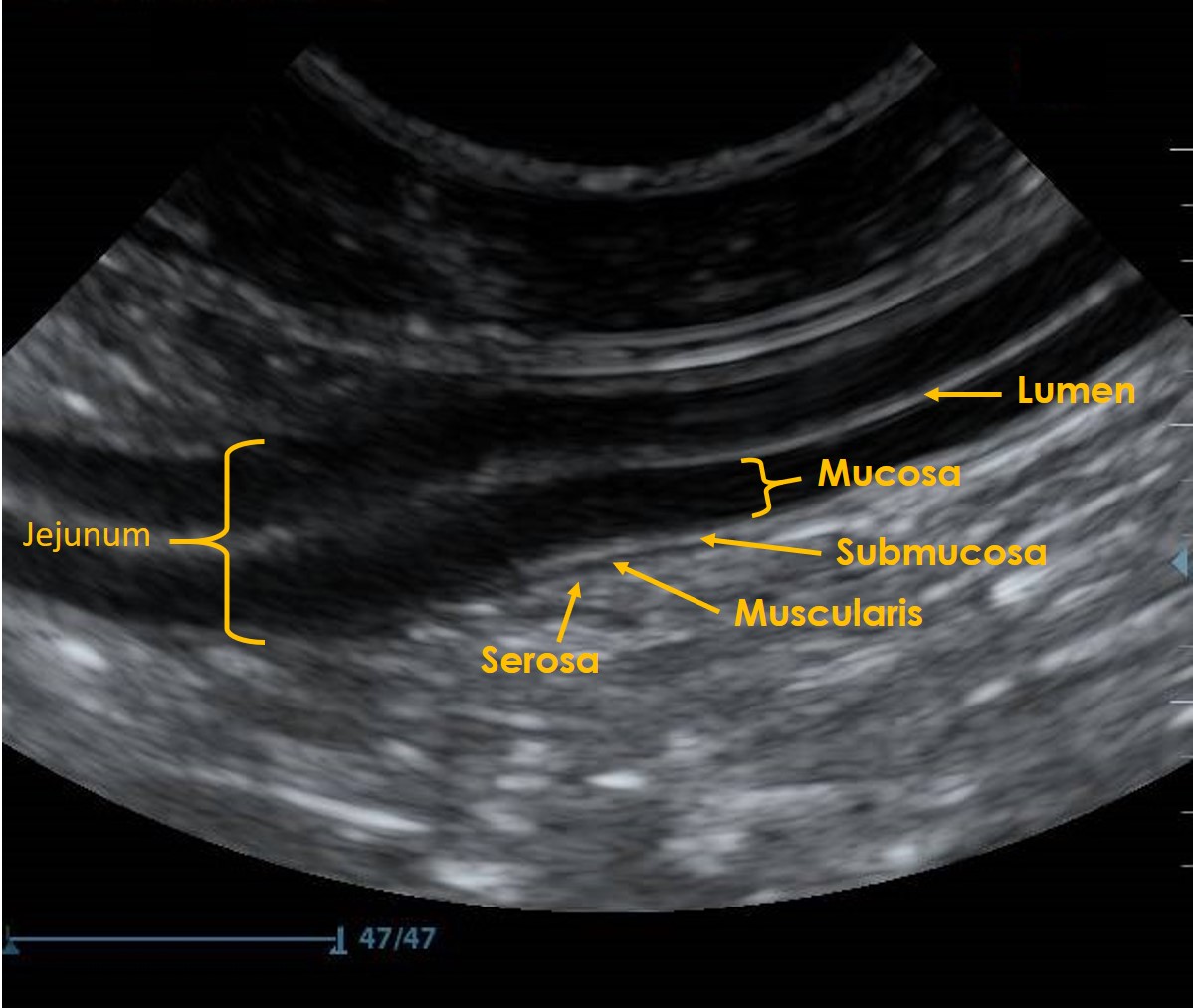 All sections of the GI tract share a common layered ultrasonographic appearance (Figure 2). However, the overall and relative thickness of parts of the GI tract layers varies with different sections of the GI tract.